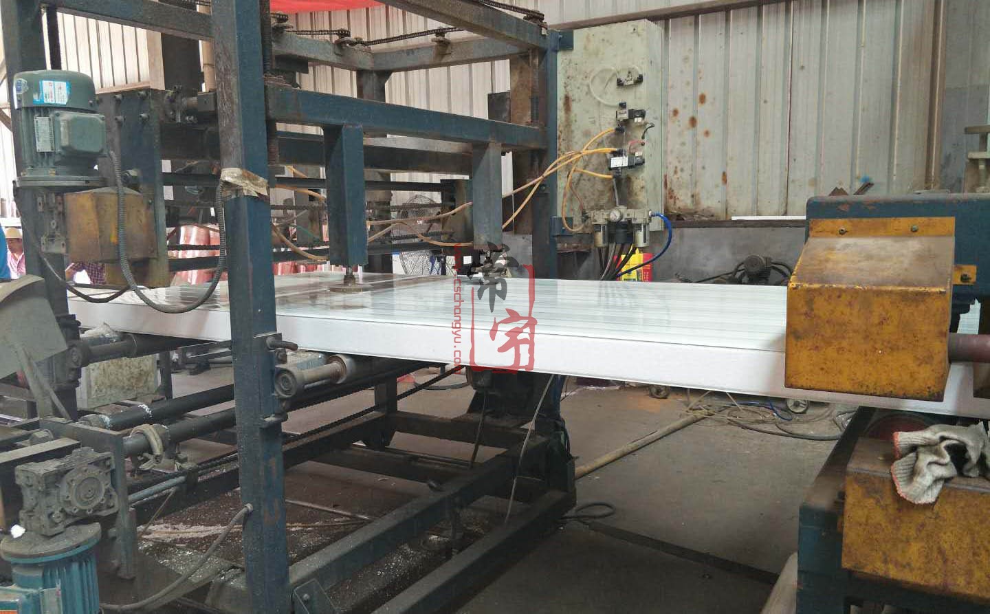 夾芯板也稱復(fù)合板,是由彩色鋼板作表層,閉孔自熄型聚苯乙烯泡沫做芯板,通過上海希明全自動(dòng)化連接成型機(jī)將彩色鋼板成型后,用高強(qiáng)度粘合劑粘合而成的一種高效新型復(fù)合建筑材料。彩鋼夾芯板,常采用企口插入式,它具有安裝方便、省時(shí)、省材,平整度好,強(qiáng)度高等優(yōu)點(diǎn),特別適用于吊頂、隔斷系統(tǒng)。