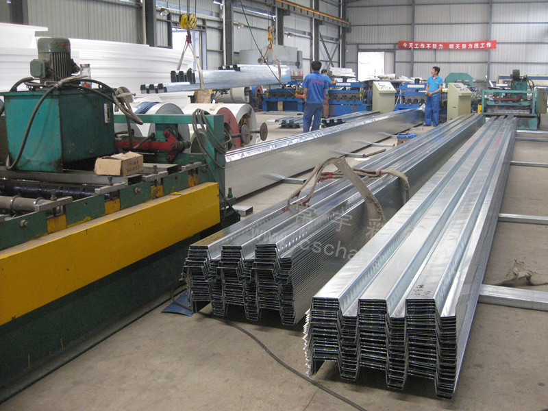 樓承板(鋼承板,建筑壓型鋼板)是采用鍍鋅鋼板經(jīng)輥壓冷彎成型,其截面成V型、U型、梯形或類似這幾種形狀的波形,主要用作永久性模板,也可被選為其他用途。
