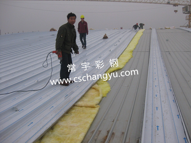 底板900型彩鋼壓型板,430型支架+保溫棉鋪墊。