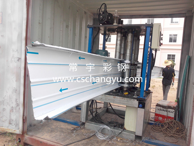 發(fā)布時(shí)間:2014-5-4來(lái)源:常宇彩鋼作者:常宇彩鋼瀏覽次數(shù):(0) 長(zhǎng)沙常宇彩鋼至海南三亞現(xiàn)場(chǎng)加工直立鎖邊鋁鎂錳屋面板