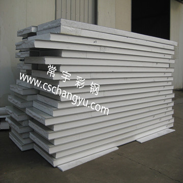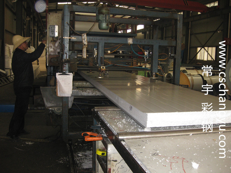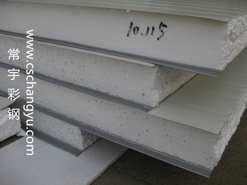 圖為長沙常宇彩鋼生產泡沫阻燃夾芯板